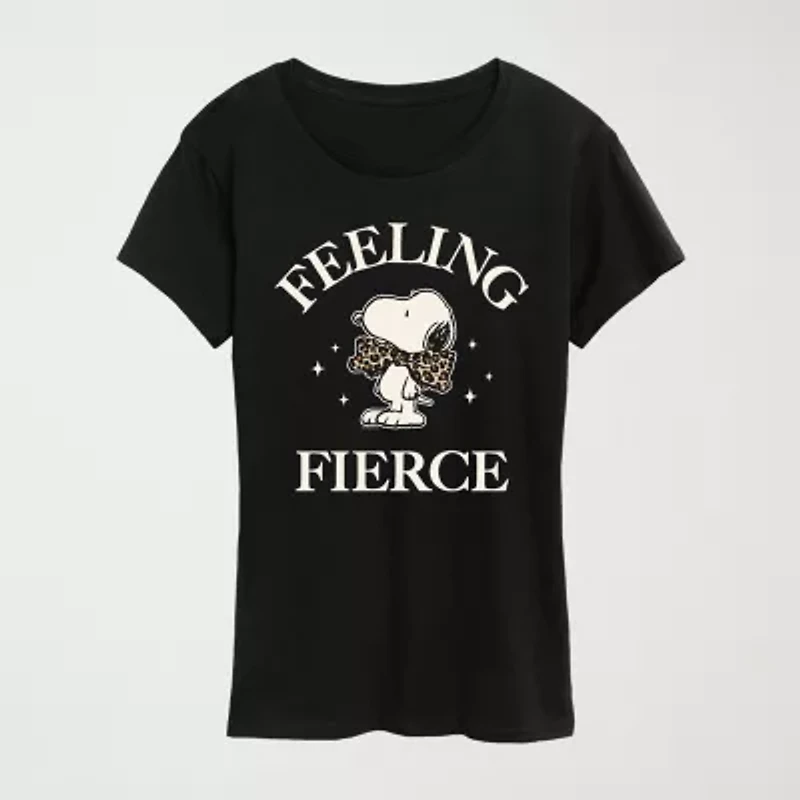 Feeling Fierce Womens Crew Neck Short Sleeve Classic Fit Snoopy Graphic T-ShirtFeeling Fierce Womens Crew Neck Short Sleeve Classic Fit Snoopy Graphic T-Shirt