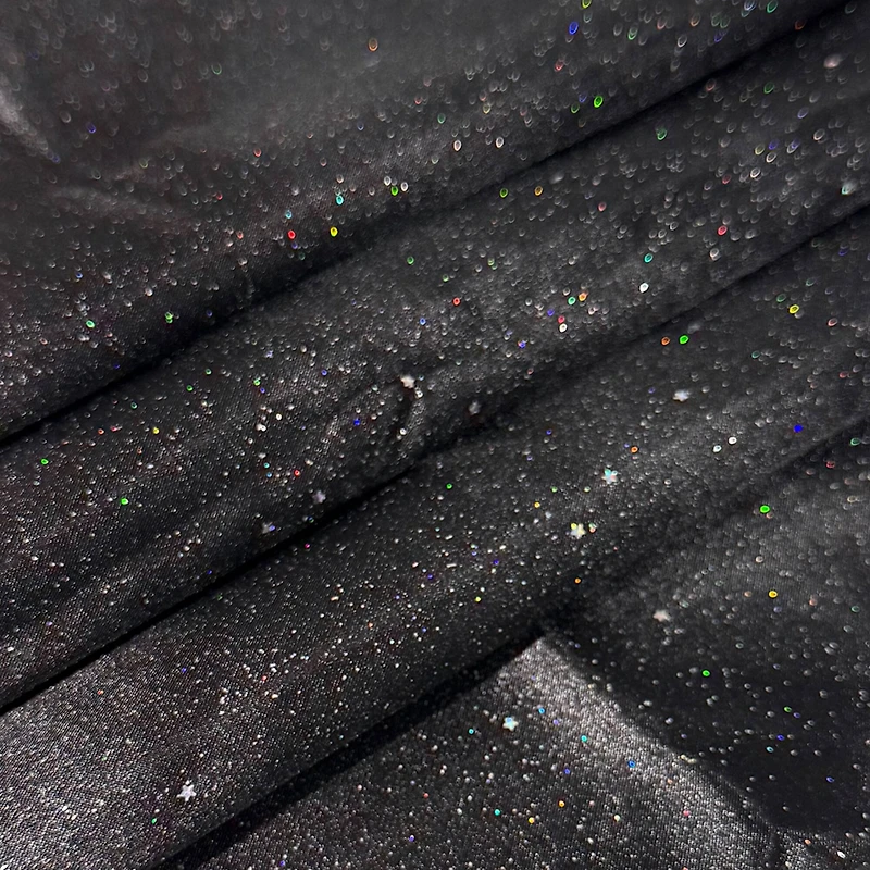 This smooth shiny black satin with glitter is perfect for costuming, cosplay and decorating. Color: BlackContent: 100% PolyesterWidth: 58"Maximum cut length: 15 yd.Note: While we will do our best to fulfill your order in one continuous cut, you may receive your order in multiple cuts