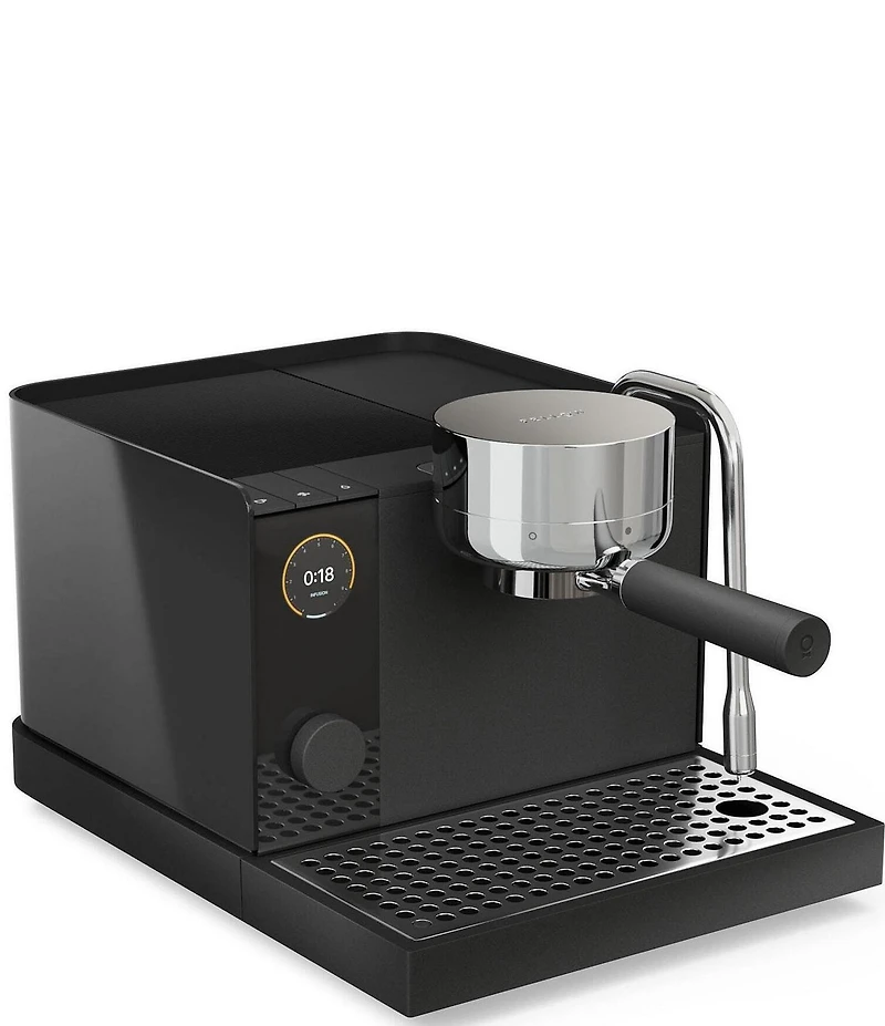 Enjoy true temperature stability and pressure control at your fingertips, through an intuitive design. Whether you're just starting out with espresso, or you're a seasoned barista looking to dial in every aspect of your brew, this machine makes exceptional espresso part of your daily ritual. Boosted Boiler - With three independent heating elements: Flow through heater - preheats water before entering the boiler for shot pulling, steaming, and getting hot water without the warm up time of a traditional boiler based machine. Boiler - coupled with the flow through heater, removes the temperature fluctuations present on a single boiler machine when switching between brewing and steaming. Group head heater - provides thermal stability to the espresso puck for more even extraction. Together, these heating elements provide to-the-degree temperature stability and a warm-up time of two minutes or less. Group Head - Commercial-style group head with brass core, internal heating element, and water dispersion block for even flow through your puck, creating better extraction and consistency. Steam Wand - Stainless steel and easily rotatable, with temperature-sensing tip, auto-stops at target temperature (customizable to different drinks), and auto-purges after use. Controls - Three piano key buttons to quickly brew, steam, and get hot water, plus a full color LCD display with navigation dial for full control and customization. Customizable Settings - Adjust pressure, temperature, and flow during pre-infusion, infusion, and ramp down. Adjust steaming temperature or choose from pre-set options for different milk types. Adjust water temperature and volume of hot water. Storage Pad - For storing mugs and can be lifted to store cleaning tools underneath. Drip Tray - With max fill indicator, integrated baffles for splash reduction, and easily removable for cleaning. Water Tank - 2 L capacity, minimum fill level-sensing, and easily removable with handle. Base - With rubber feet and built-in cord nest for an uncluttered counter. Approx. 7.24 x 12.4 x 10.98 Inches 21.7 lbs Cord Length: 3 feet Power: 110-120V | 1700W | 60Hz | 15A Pressure: 15 bar pump calibrated for up to 9 bars of extraction Materials: Stainless steel, brass, silicone, high quality food-grade plastic, Walnut wood (Cherry Red only), or Maple wood (Malted Chocolate only) App: (iOS and Android) With automatic updates to keep your machine up to date and brewing at its best. Create, share, and edit espresso profiles, and more features coming soon. What's included: 58 mm bottomless portafilter with ergonomic plastic handle (Black only), Walnut wood handle (Cherry Red only), or Maple wood handle (Malted Chocolate only) Steam wand tip cleaner Shot splitter attachment 18 g single wall double shot basket 18 g pressurized double shot basket 10 oz stainless steel steaming pitcher Tamper with ergonomic aluminum handle (Black only), Walnut wood handle (Cherry Red only), or Maple wood handle (Malted Chocolate only) Backflush disc Imported
