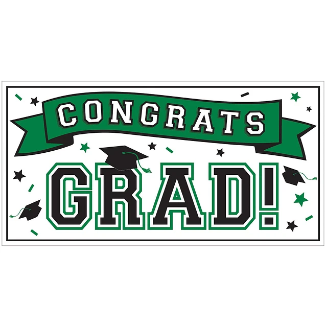 Festive Green Congrats Grad Plastic Horizontal Banner, 5.41ft x 2.79ft