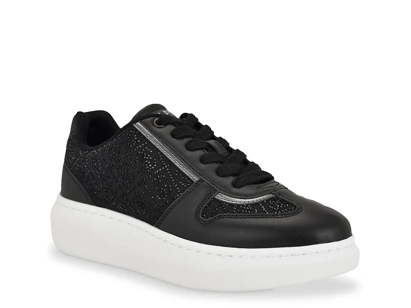 Add a fashion‑forward edge to your everyday look with the Fhilip platform sneaker from Guess. A multimedia upper with rhinestone details accentuates this lace-up sneaker. The soft fabric lining ensures breathable comfort, while the cushioned platform sole provides stability and support for effortless strides.