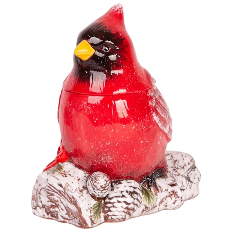 The Figural Cardinal Christmas Cookie Jar will look beautiful in your winter cabin kitchen. It's perfect for storing holiday treats and adding a touch of woodland charm! Jar measures 12L x 11W x 12H in. Crafted of ceramic Features cardinal on greenery Hues of red, white, and brown Food safe Care: Hand wash only. This item is available at Kirklands.com only, not available in stores. Please note: this item cannot be shipped to APO/FPO addresses.