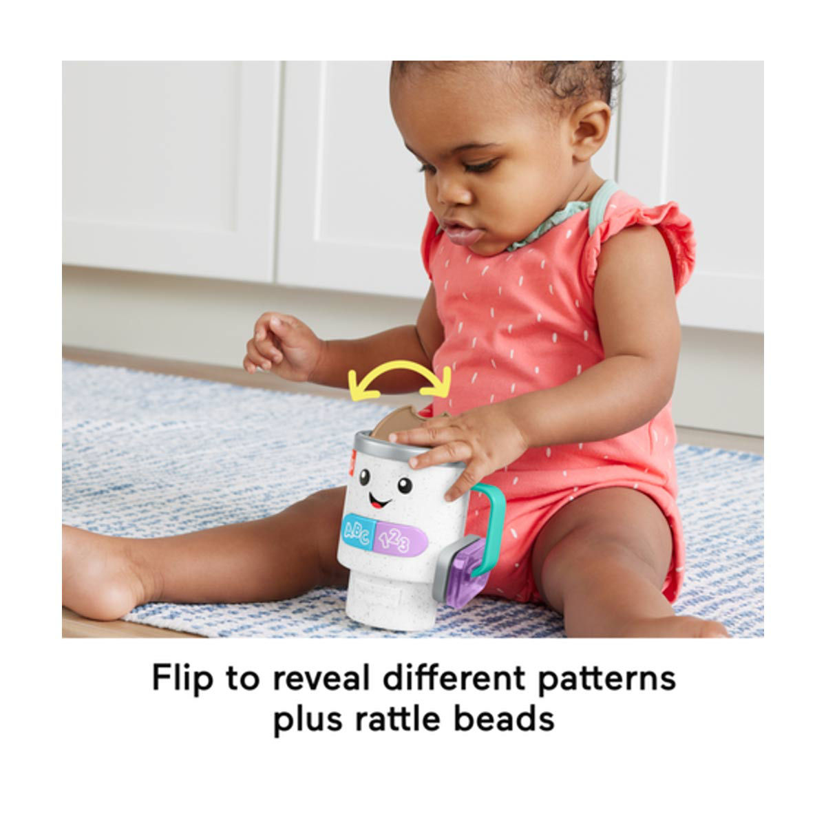 Introduce your toddler to the brilliance of this Fisher-Price Wake Up & Learn Coffee Mug. This coffee mug has two buttons, one for alphabets and the other for numerals. It has an interesting and exciting construction that will keep your baby entertained all day. The mug is lightweight, sturdy, and has a handle to hold on to, making it your baby's favorite interactive toy.
