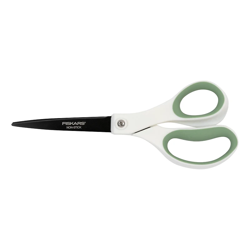 Great for all-purpose cutting in the office and at home, Fiskars Nonstick Titanium Softgrip Fashion scissors offer improved cutting performance. These versatile scissors feature nonstick, titanium-enhanced, stainless steel blades that stay sharp through heavy use and cut cleanly through materials with sticky adhesives. A lightweight design and ergonomically sculpted handle provide excellent cutting control, while Softgrip touchpoints enhance comfort and control.