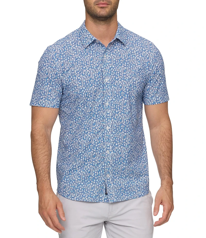From Flag and Anthem, this shirt features: Collared neckline Short sleeves Floral pattern Button-front closure Tailored athletic fit Madeflex Performance Technologies Moisture-wicking Wrinkle-free 4-way stretch Contrasting fabric inside back yoke, sleeve cuffs, and sleeve plackets Approx. 29" length Nylon/spandex Machine wash/tumble dry Imported.
