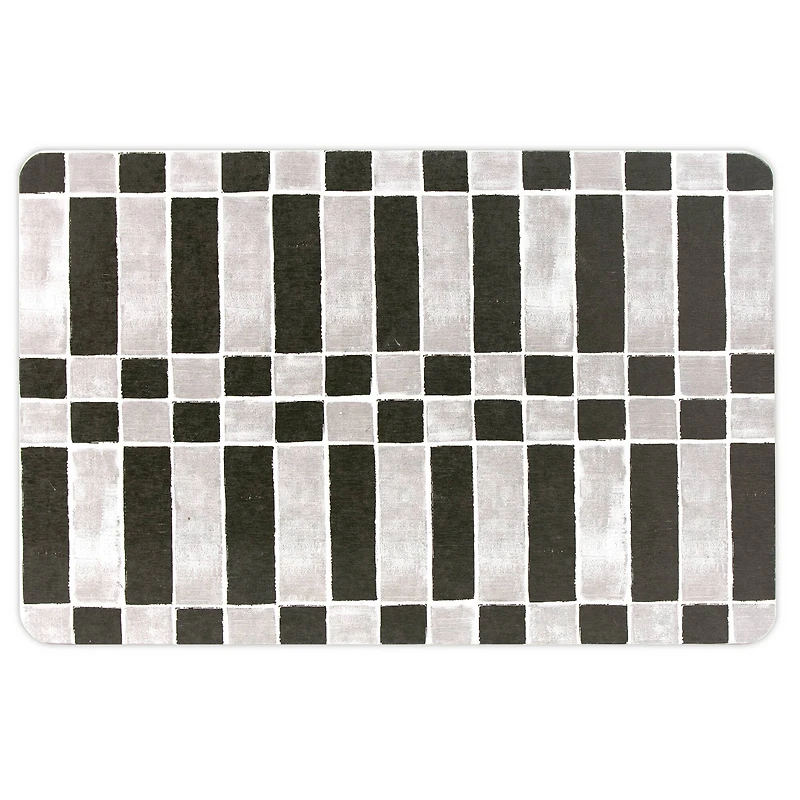 Modern with a touch of whimsy, this quick-drying and absorbent bath mat is a wonderful addition to any bathroom. Featuring a light grey and black rectangular checker design, the Checker Black Stone Quick Drying Mat combines style and function. Made from diatomaceous earth—a soft sedimentary rock known for its natural absorbency and antimicrobial properties—this mat dries to the touch in just 60 seconds.It includes a non-slip backing for added safety and is moppable and easy to clean. Measuring 24" x 16", this mat is designed for interior use only and is perfect for both renters and homeowners. Do not bleach.Details:Light grey and black24" x 16"Diatomaceous earth; Includes non-slip matDesigned for indoor use