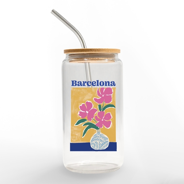 Take every sip in style with this Floral Barcelona Glass Tumbler! This cute glass is perfect for the iced coffee lover in your life. With its bamboo lid and metal straw, it can go with you wherever you go! Tumbler measures 5.8H x 3 in. in diameter Holds up to 16 oz. Crafted of glass Clear finish Features the text, "Barcelona" with a floral painting design Hues of pink, blue, orange, green, and white Includes bamboo lid and metal straw Recommended for iced beverages only Designed and printed in the United States Care: Hand wash only. This item is available at Kirklands.com only, not available in stores. Please note: this item cannot be shipped to APO/FPO addresses.