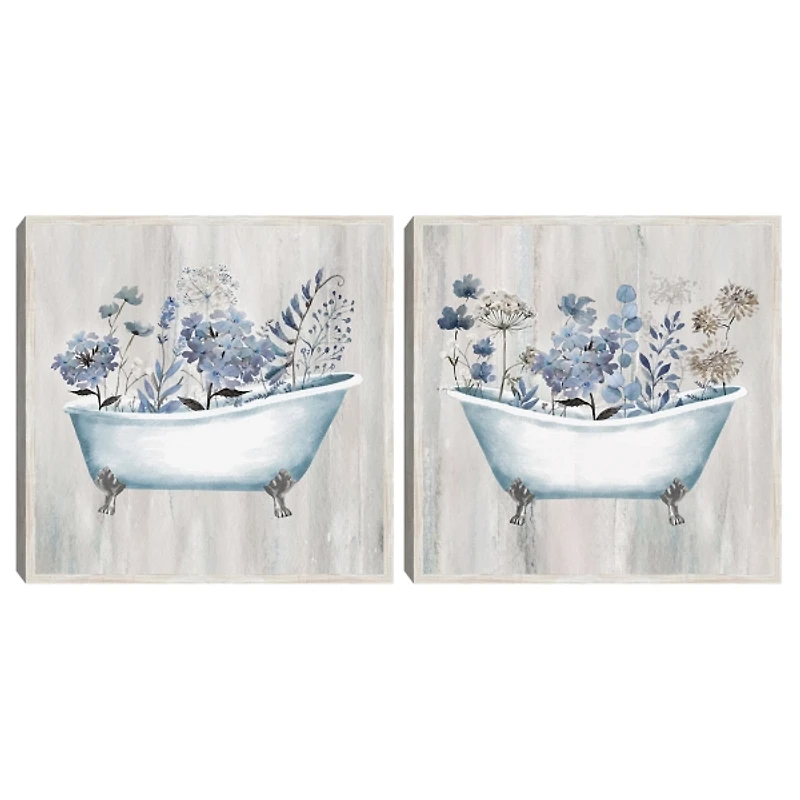 Floral Bath Framed Canvas Art Prints, Set of 2