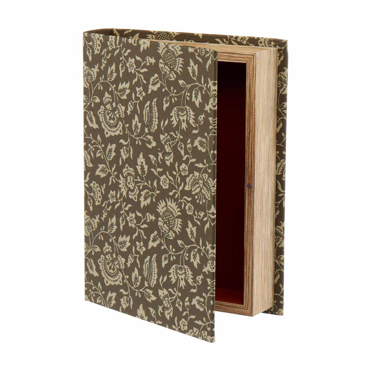 Add a touch of vintage charm and practical storage to your home with our Floral Book Box, 9 inches. This cleverly designed decorative box looks just like a classic hardcover book, complete with intricate floral patterns on the cover and spine, but opens to reveal a hidden compartment perfect for storing your treasures.