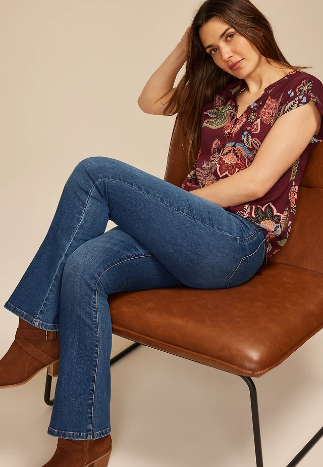 Preston & York Mirabelle Short Sleeve Floral Button Front Collar Coordinating Blouse