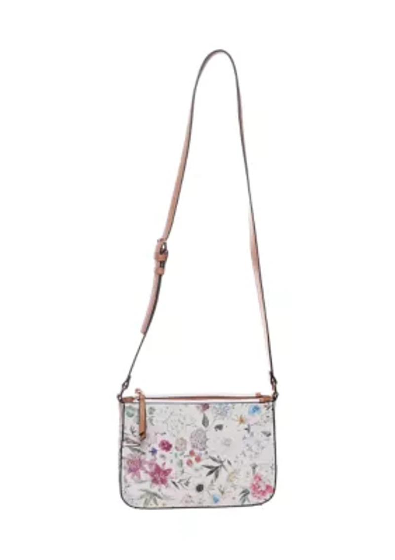 Carry your essentials in style with the Kim Rogers® crossbody bag. Featuring a charming floral pattern, this lightweight bag offers hands-free convenience with an adjustable strap for the perfect fit. 21" drop crossbody strap Imported Belk Exclusive Product Specifications 10" x 7" x 2.2" Material & Care Polyurethane Clean with a soft cloth