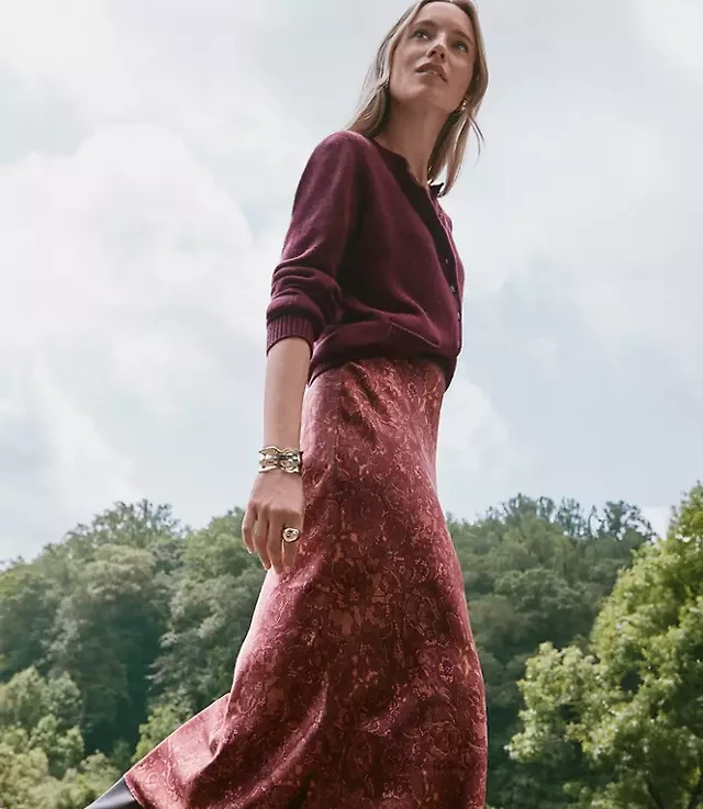 Floral Lace Print Satin Bias Maxi Skirt