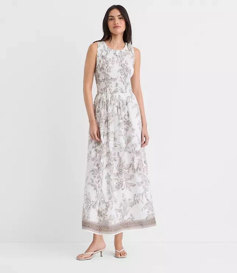 Floral Toile Smocked Midi Pocket Dress