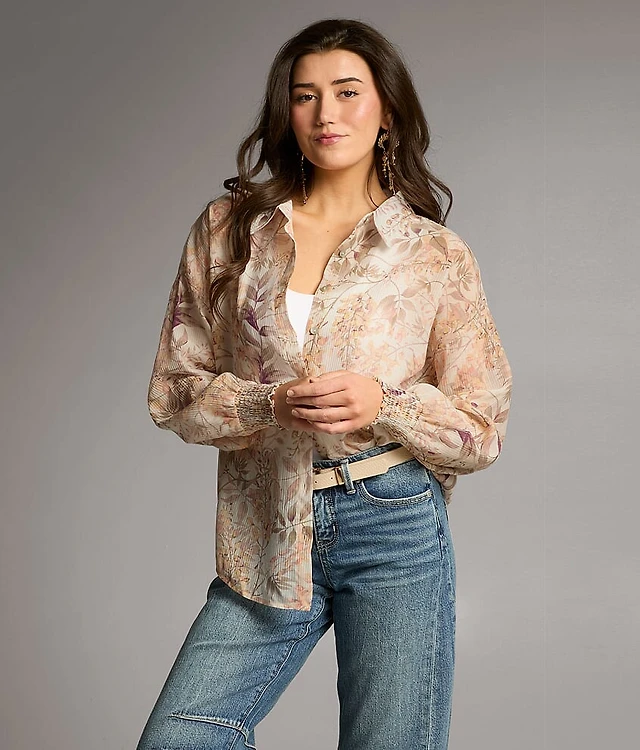 Plus Eyelet Flutter Sleeve Woven Blouse