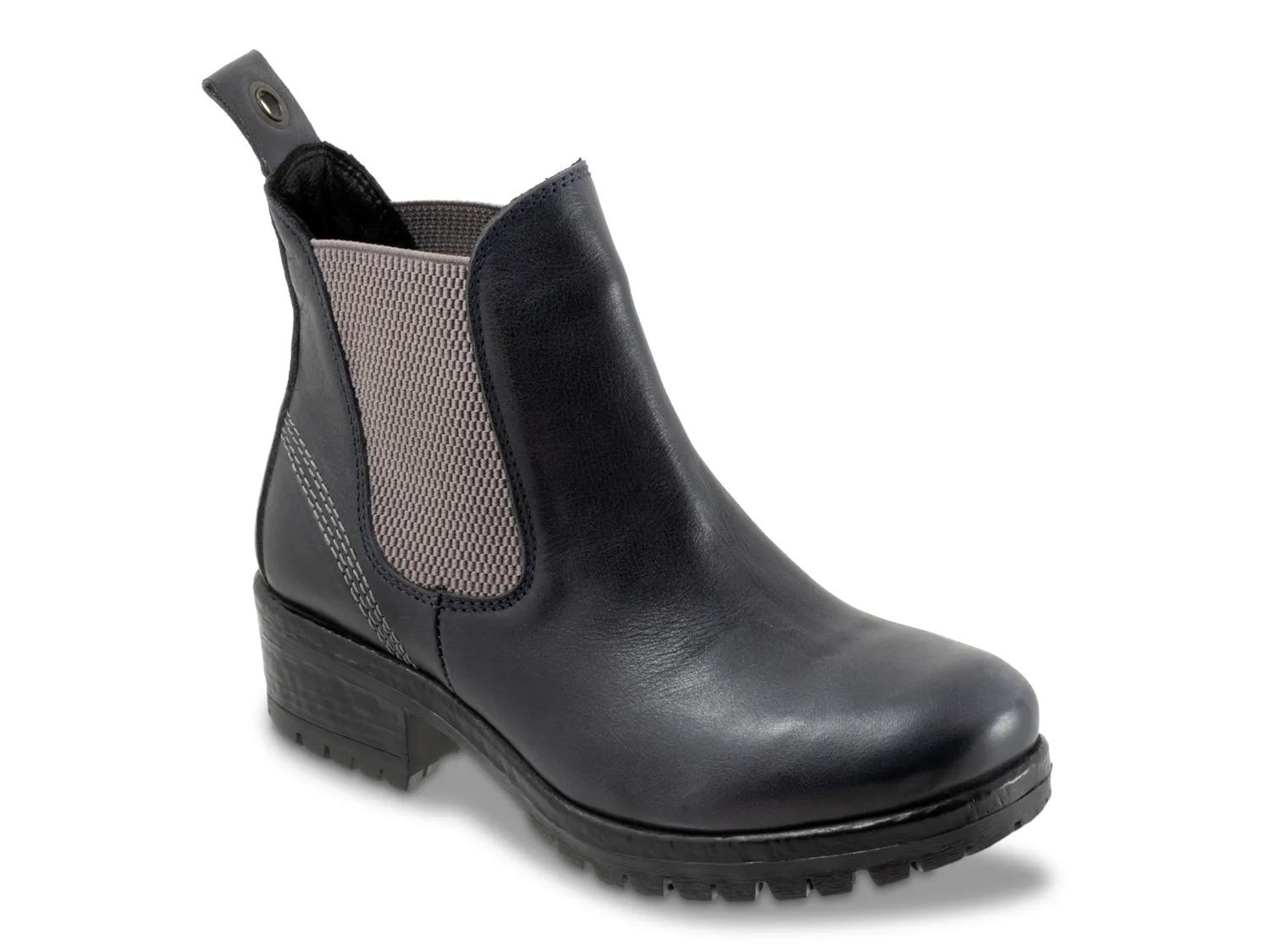 The Florida Chelsea boot from Bueno brings a bold look to your fall style. This ankle bootie is highlighted with ribbed goring, contrast stitching details and thick lug outsole.