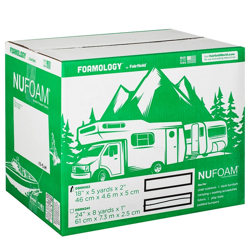 NuFoam is a safe alternative to conventional foam that is made from densified polyester batting. It is mildew resistant, and won't yellow or disintegrate. It's perfect for chair cushions, deck furniture, camping, futons, crib bumpers, playpen mats, recreational vehicle accessories and more. Made from compressed layers of 100% polyester that range from 1" to 4" thick. NuFoam works best for occasional seating as it will compress over time. We recommend using NuFoam that is 1" thicker than your intended cushion to allow for compression. It will be a snug fit inside the cover.Details:White18" x 5yd. x 2" (46cm x 4.6m x 5cm) roll size100% polyesterResists mildewNon-allergenicUnconditionally guaranteedHand wash, air dry