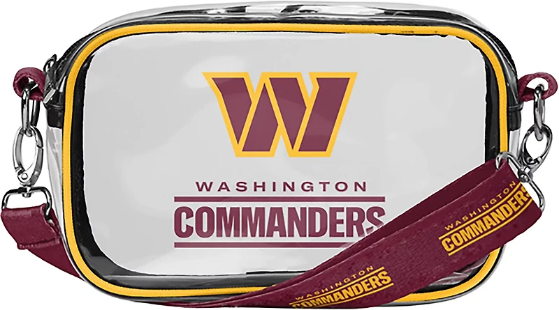 Bring all you need to watch the Commanders get a victory with the FOCO Washington Commanders Clear Camera Bag. This bag is clear and features a team design that helps prove your loyalty, and the strap makes it easy to throw over your shoulder.