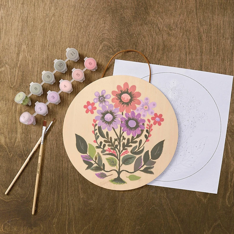 Whether you are a beginner diving into the world of painting or a seasoned pro, this paint-by-number kit featuring a round plywood surface will provide a fun and relaxing outlet for your creativity. Complete with brushes, paints, and a plywood board with a hanger, this kit has everything needed to paint a lovely floral folk art design.Details:Folk Art design8" (20 cm) plywood surface diameter140 numbered sectionsConforms to ASTM D 4236Contents:1 - 8" (20 cm) diameter basswood plywood board, with hanger2 Brushes - 1 flat brush, 1 detail brush11 Numbered paint pots1 Printed picture of final painting1 Numbered reference sheetInstruction sheet included
