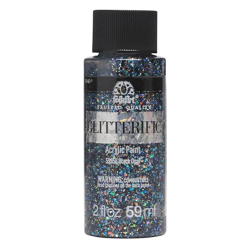 Why stop at vibrant colors when you can go all out and add some sparkle too! This acrylic paint from FolkArt is loaded with multiple-sized glitter particles that are perfect to give your art projects a dazzling finish. You can use a foam brush to apply this paint on rigid plastic, wood, decorative fabrics, metal, canvas, glass and paper.Details:Available in multiple colors2 fl. oz. (59 mL) bottle sizeUltra high-glossWater-basedCL certifiedConforms to ASTM D-4236For indoor use only