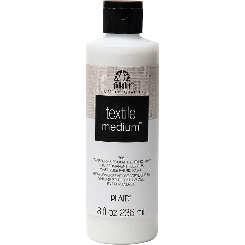 This textile medium from FolkArt is perfect to transform any FolkArt acrylic paint into a flexible, washable and permanent fabric paint. Its superior formula will let you explore options beyond traditional canvases. Details: 8 fl. oz. (236 mL) Nontoxic Machine washable Permanent on most fabrics AP Certified Conforms to ASTM D-4236 For use with any FolkArt Acrylic Paint (sold separately)