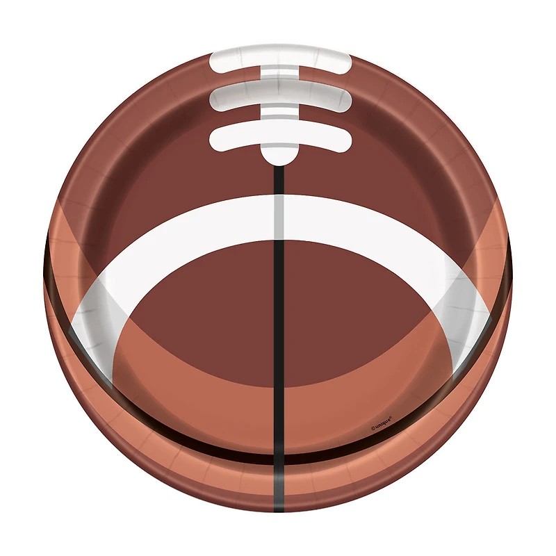 Score a touchdown at your next game day gathering with our Football Shaped Paper Plates! Measuring a perfect 9 inches in diameter, these plates are designed to resemble a classic football, complete with realistic laces and stitching details. This 8-count pack is the ultimate addition to your sports-themed party, ensuring that your tableware is as spirited as your celebration.
