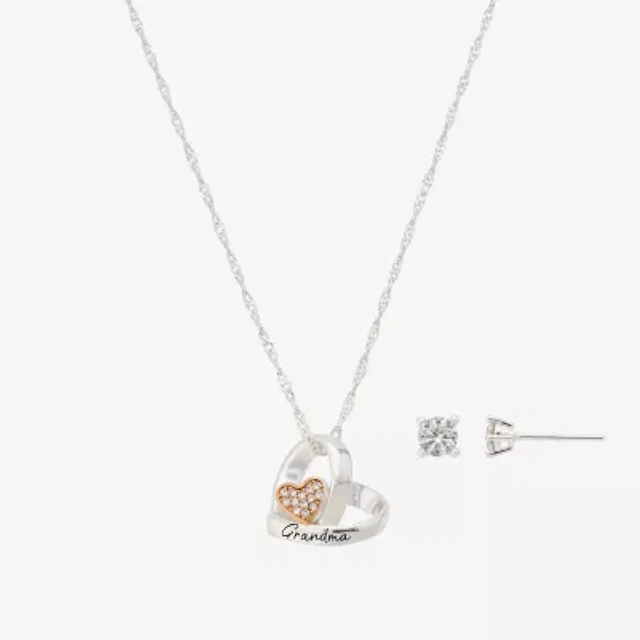 Footnotes Grandma Womens Cubic Zirconia 14k Rose Gold Over Brass Pure Silver Over Brass Heart 2-pc. Jewelry Set