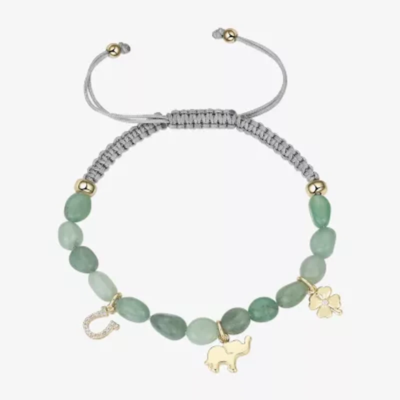 Footnotes Horseshoe Elephant Womens Green Aventurine Clover Bolo Bracelet
