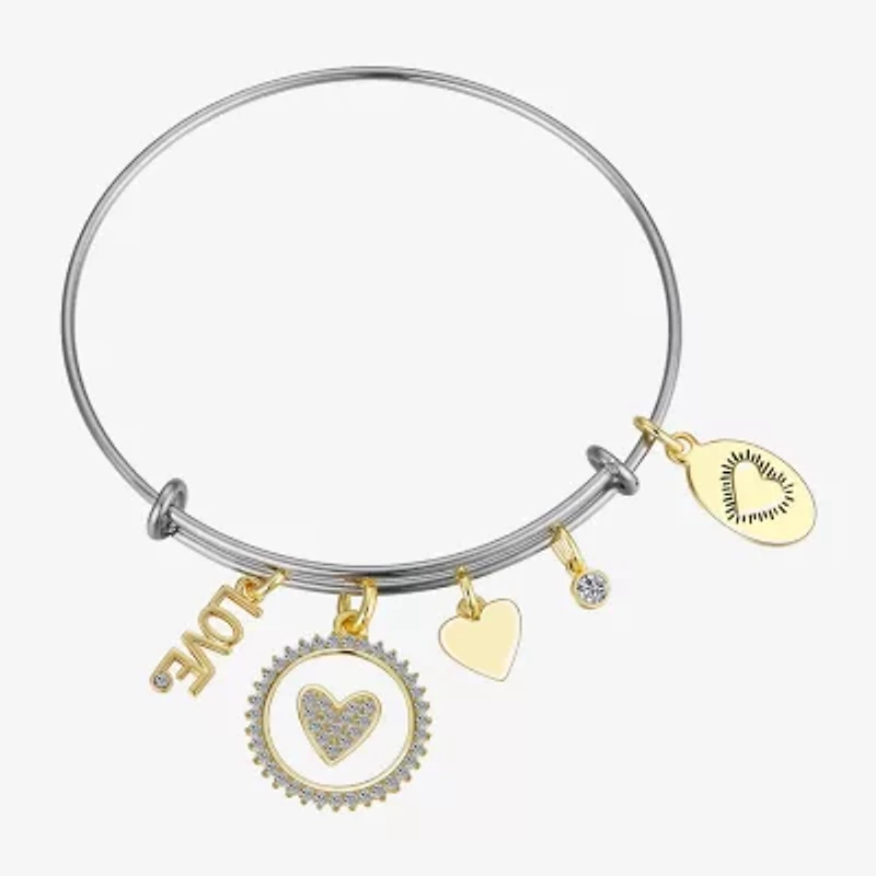 Footnotes Love Womens Cubic Zirconia 14K Gold Over Brass Heart Bangle Bracelet