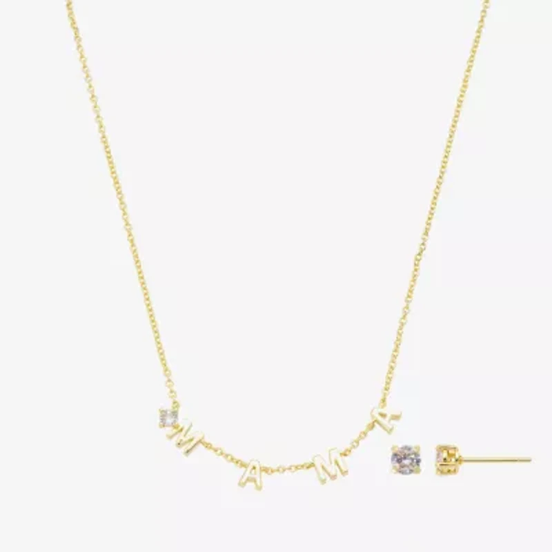 Footnotes Mama Womens Cubic Zirconia 14K Gold Over Brass 2-pc. Jewelry Set