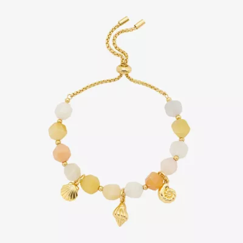 Footnotes Seashells Charm Womens Champagne Aventurine 14K Gold Over Brass Bolo Bracelet