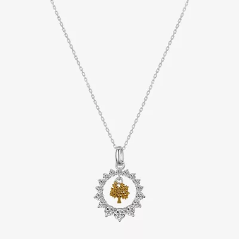 Footnotes Tree Charm Womens Cubic Zirconia Sterling Silver Round 16 Inch Pendant Necklace