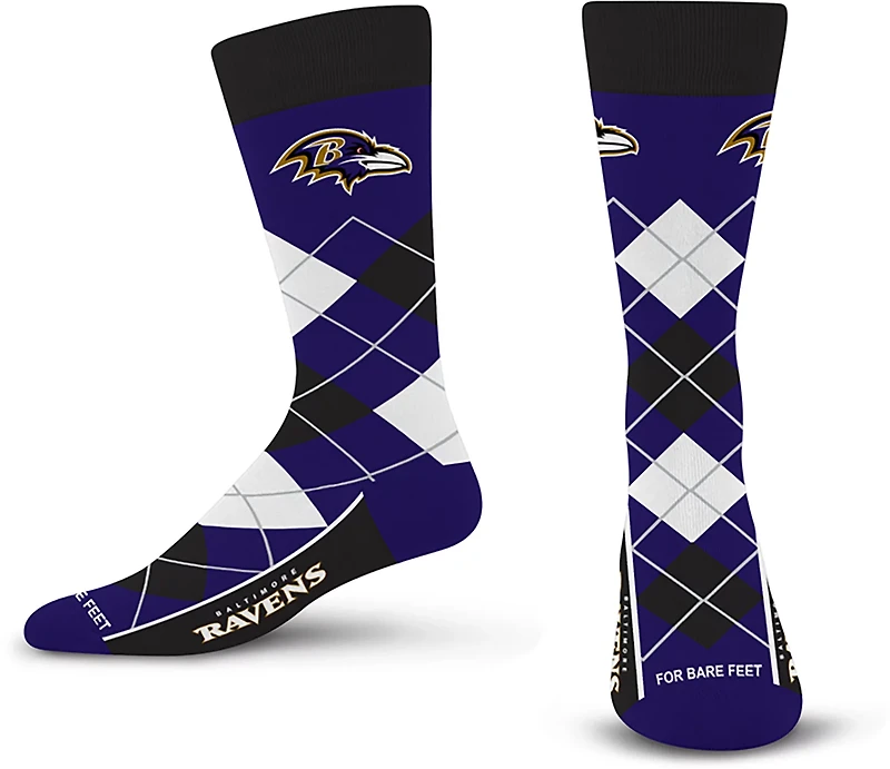 For Bare Feet Adults' Ravens Argyle Remix Trouser Socks