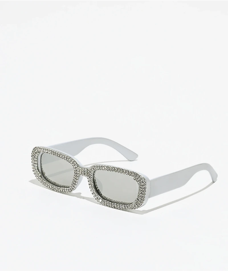 Add bold Y2K Sparkle to any outfit with the Forehead sunglasses, boasting silver rhinestones bejeweled across the front. The mirrored lenses further provide silver shine.
