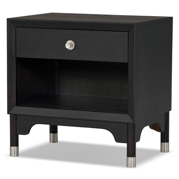 This Forma Black Charging Nightstand with LED Light features style and function! Its drawer, open shelf, touch LED light, and USB ports bring modern function all in a compact, stylish design. Nightstand measures 26W x 18D x 26H in. Crafted of rubberwood Black finish Features a drawer and an open shelf Equipped with USB charging ports and a touch LED light Silver hardware finish Weight: 50 lbs. Weight capacity: 50 lbs. Assembly required; see Info & Guides in the drop down below to view or print assembly info Not intended for commercial use Care: Wipe with a soft, dry cloth. This item is available at Kirklands.com only, not available in stores. Please note: this item cannot be shipped to APO/FPO addresses.