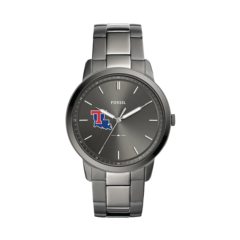 Add a pop of Louisiana Tech Bulldogs spirit to any outfit with this sleek Minimalist Three-Hand Smoke Watch from Fossil. Built with classic quartz movement and featuring a detailed Louisiana Tech Bulldogs logo, it's the perfect way to put your team pride on display in a classic and timeless way.