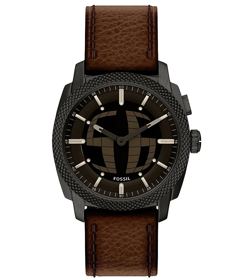 Fossil Men's Machine Big Tic Ana-Digi Brown Leather Strap Watch