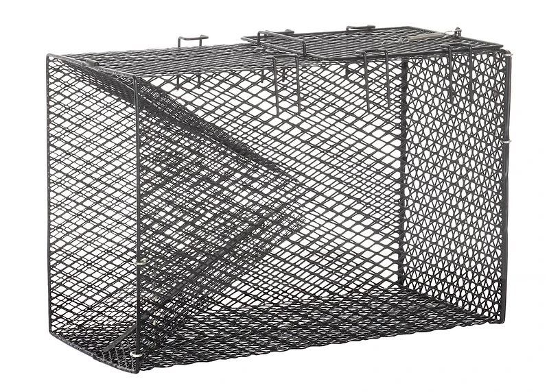 - Easy-access sliding mesh door for baiting and fish removal