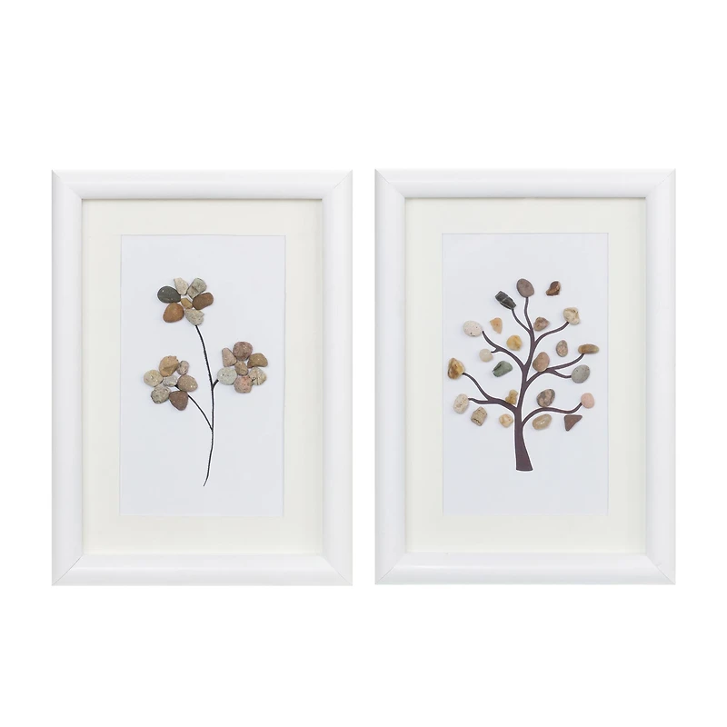 Framed Tree & Floral Pebble Art Set