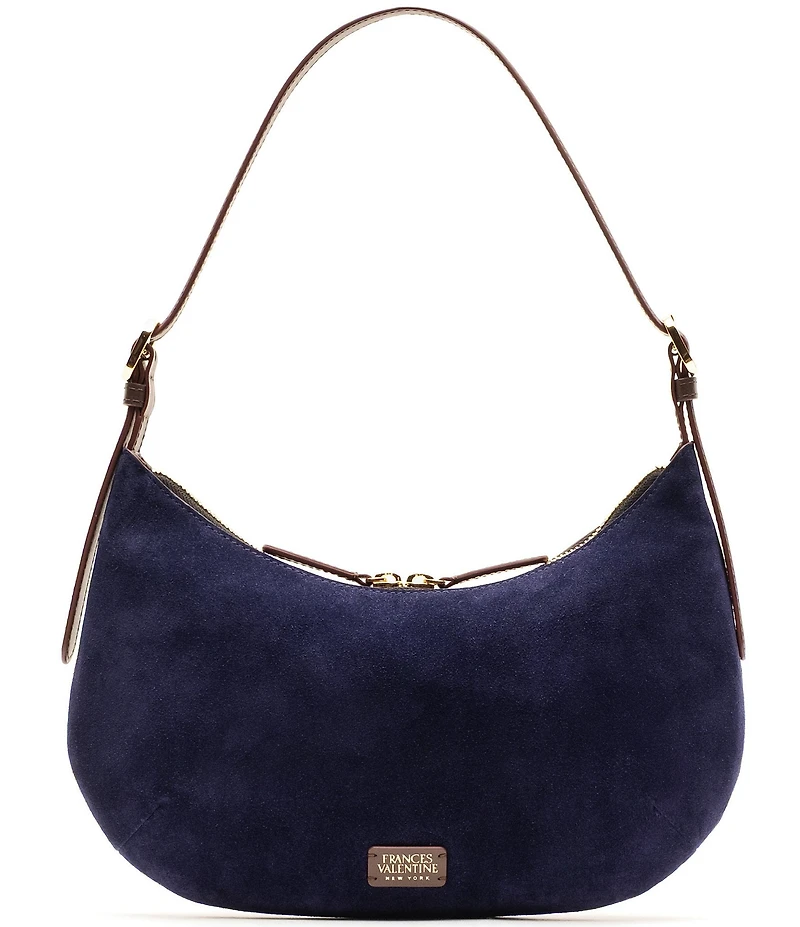 From FRANCES VALENTINE, this shoulder hobo bag features: A sleek suede hobo bag with a softly curved silhouette and slim shoulder strap Minimal and easy to wear, the Starr offers a refined, everyday shape in a range of rich tonal colors 100% suede leather Double zipper closure 1 interior pocket Approx. 12" L x 2" W x 8" H Approx. 10" strap drop Imported.