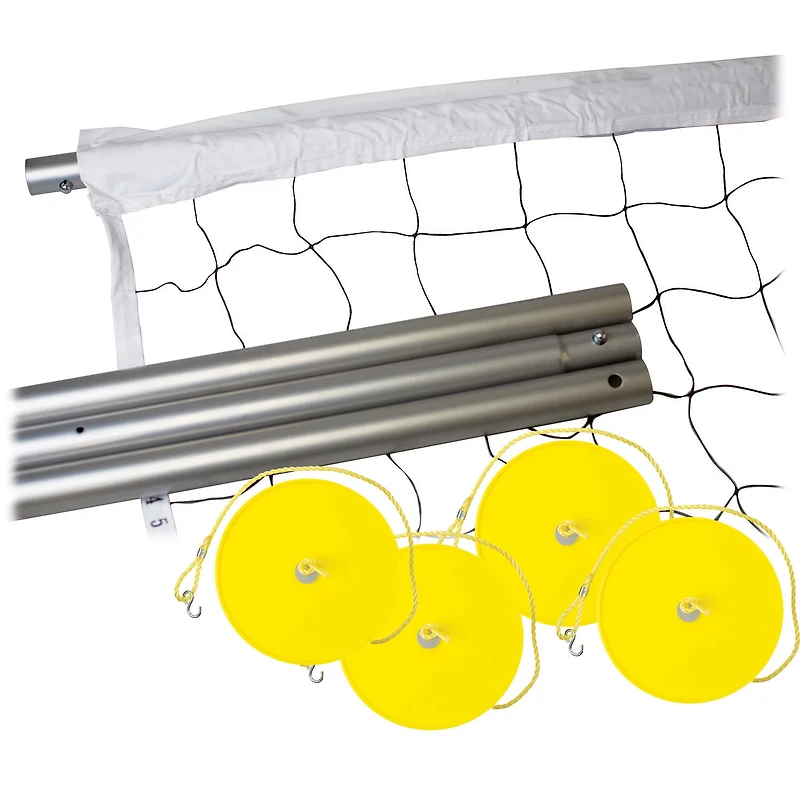 Start up a fun game at the beach or in the backyard with the Franklin Expert Outdoor Volleyball Post and Net System, which features heavy gauge ground stakes and heavy-duty steel poles to help ensure lasting use. The molded tension bar adjustment for the guy ropes can withstand competitive games, and the sand discs mark off boundaries when you're at the beach. Includes a carrying bag.