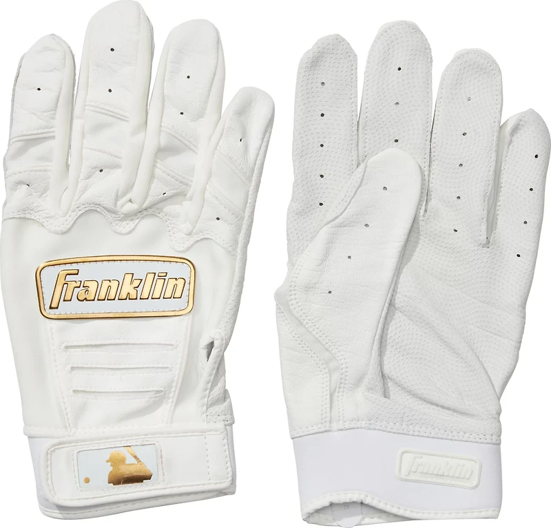 Step up to the plate ready to swing like the pros when you put on the Franklin Men's MLB CFX Pro Baseball Batting Gloves. The Pittards® digital sheepskin leather palms deliver soft, comfortable wear, while the Tectonic fit inserts promote steady bat handling. The etched-groove design supplies reduces bunching and improves grip.