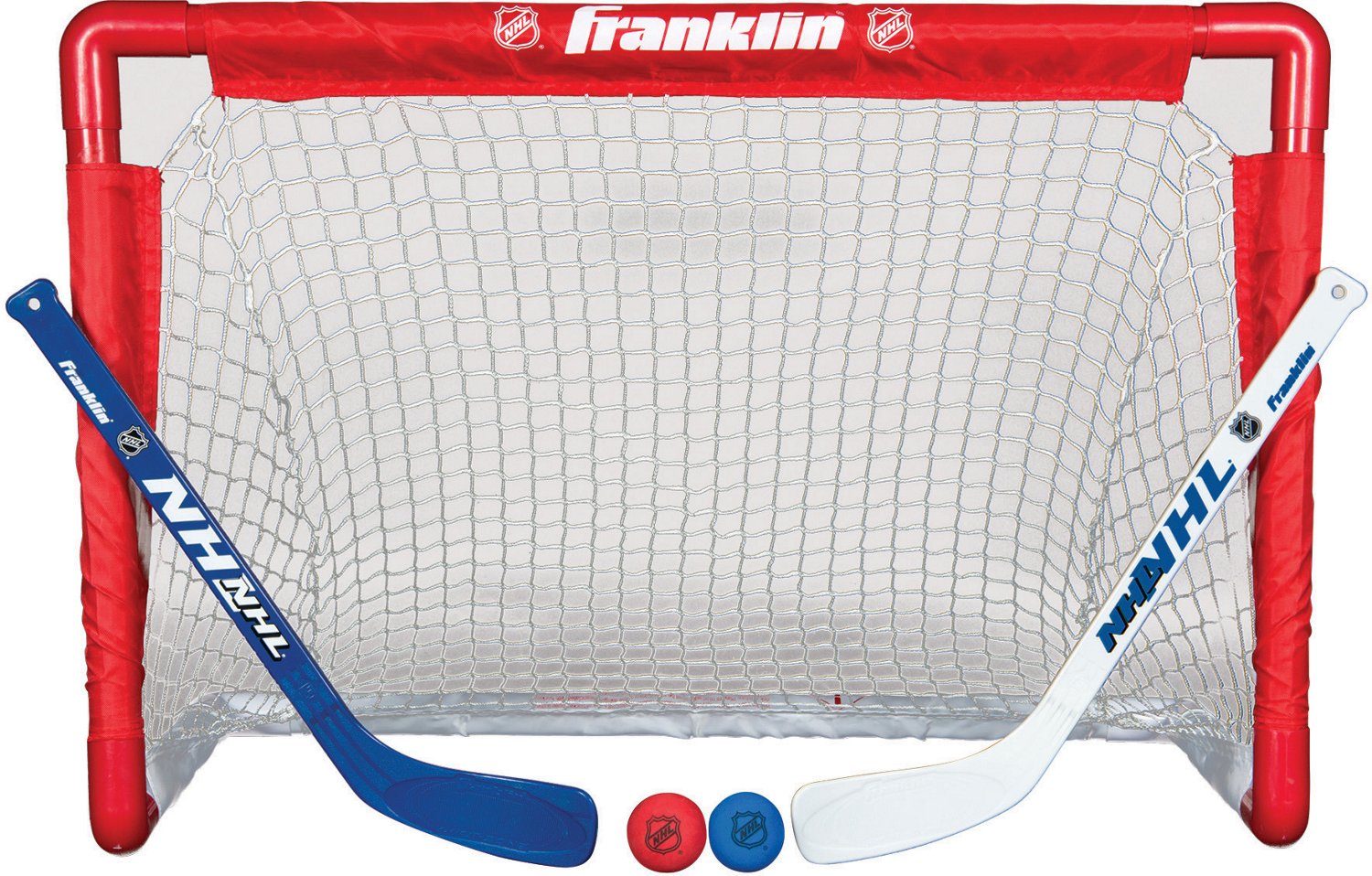 Make your way to the top while practicing with the Franklin NHL Mini Hockey Goal Set. With 2 sticks, 2 balls and a goal, you can simulate real gameplay by challenging your friend to a duel. And no matter how hard you hit the balls into the polyester net, the high-impact, rugged frame won't falter.