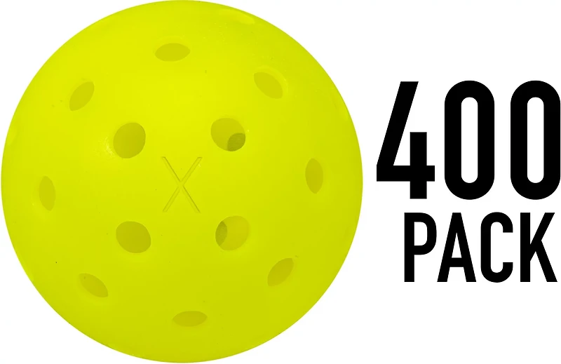 Make sure you play pickleball with pickleballs that are reliable and provide great performance when you use the Franklin Pro X-40 Outdoor Pickleballs Bulk 400-Pack . The no-seam, one-piece polyethylene construction resists dents and cracking out on outdoor pickleball courts, and the 40 precise, machine-drilled holes deliver a tight, consistent spin. A bright appearance helps you easily keep an eye on the ball as its served and hit.
