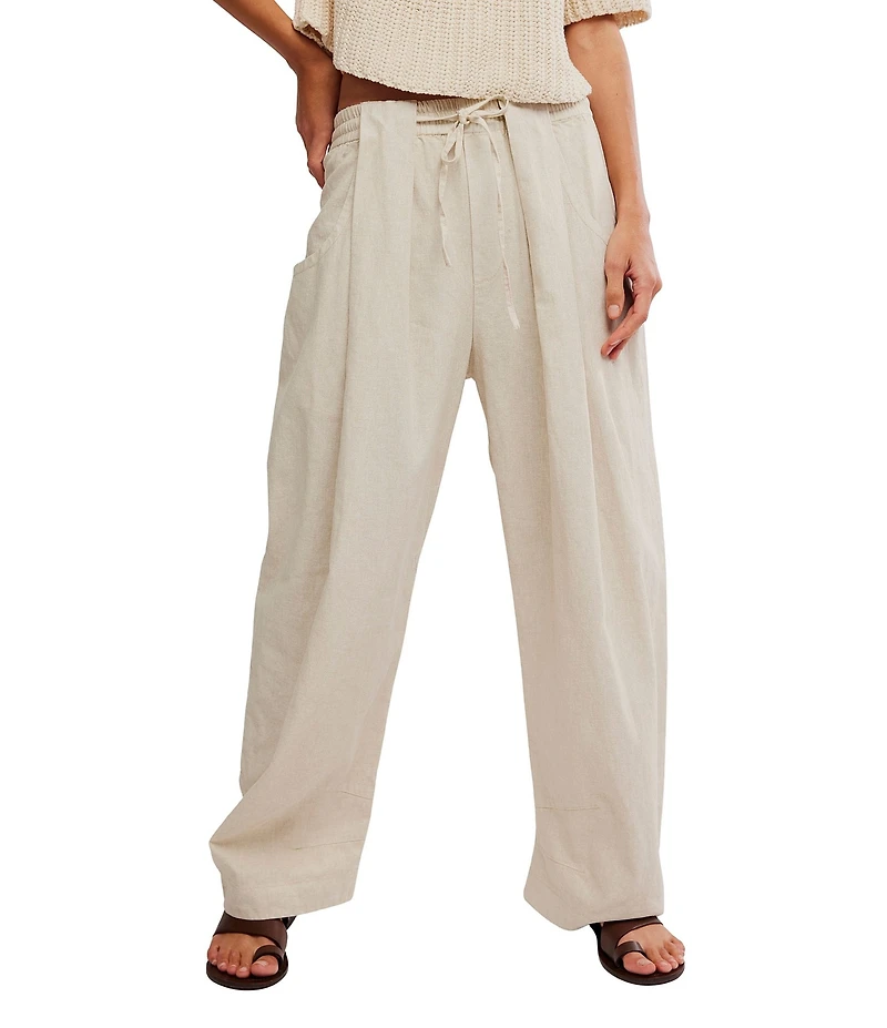 Free People Chambers Laid Back Linen Blend Mid Rise Pull-On Pants