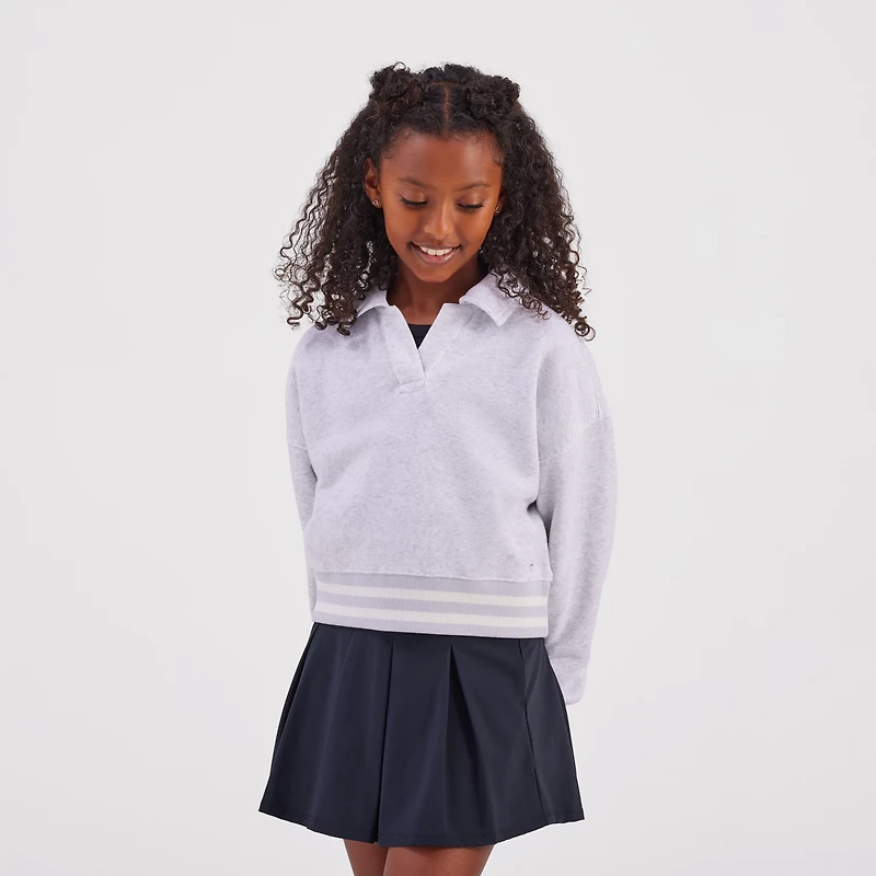 Have your little one looking their best when they wear the Freely Girls' Janae Pullover Sweatshirt. It is made of 75% recycled polyester and 25% cotton. The long sleeves keep them warm, and its collar neckline adds a sophisticated touch. The dropped shoulders create an oversized look.