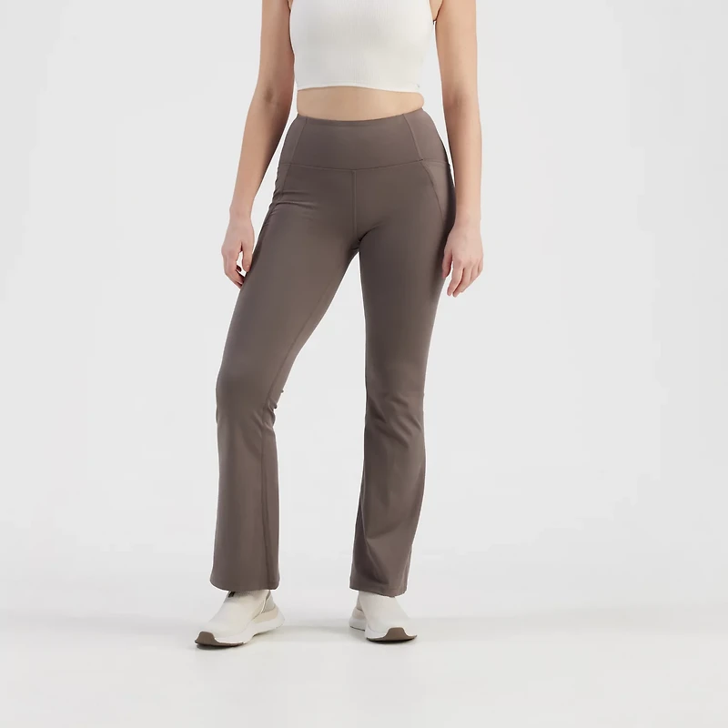 Freely Women's Haven Luxe Flare Pants offers comfort and modern style for any adventure or casual day. These full-length flare leggings are crafted from an 85% recycled polyester and 15% spandex stretch blend, adapting to your every movement. Featuring odor resistant technology, the high-rise fit and wide waistband provide added comfort. The versatile flared leg design completes your look.