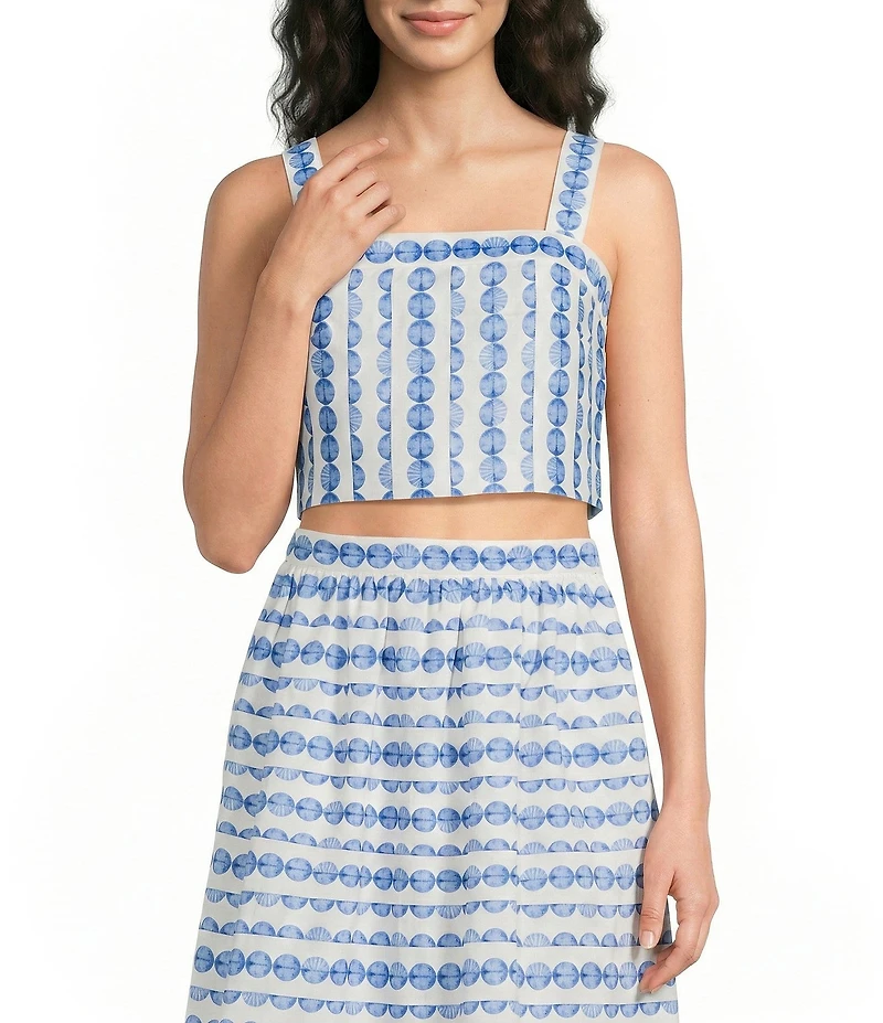 French Connection Printed Structured Taffeta Square Neck Sleeveless Coordinating Top