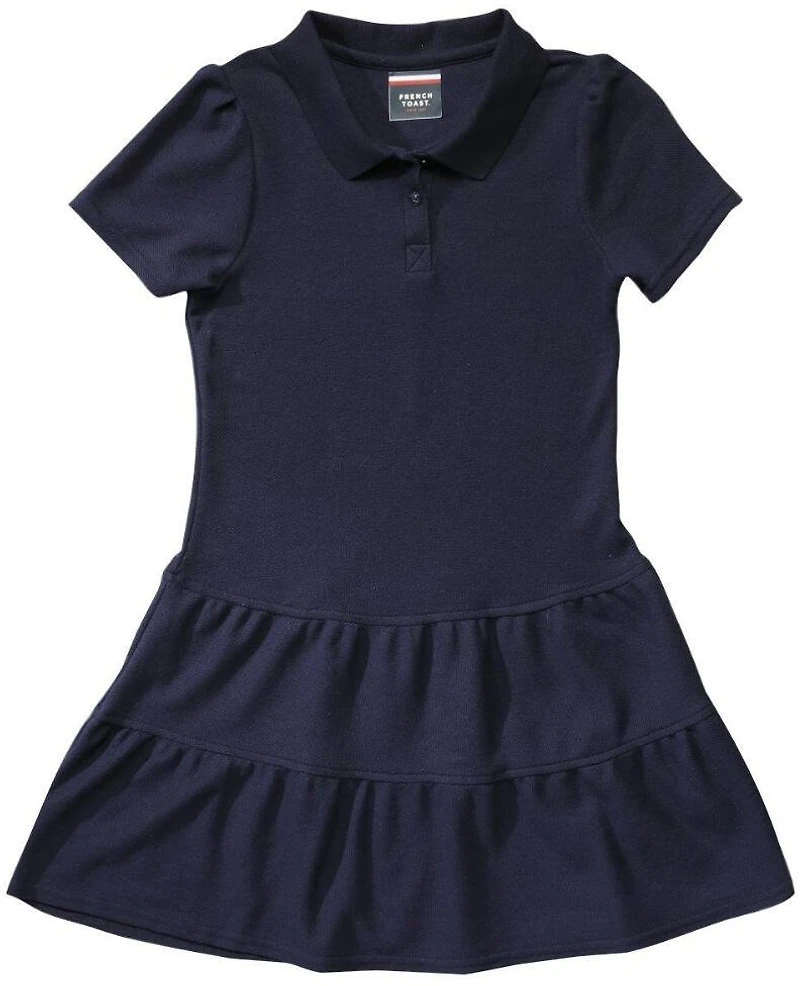 The French Toast Toddler Girls' Ruffled Pique Polo Dress complements any occasion, whether it's a casual day at school or a picnic at the park. This dress is made with a blend of cotton and polyester piqué fabric and has a dropped waistline for a relaxed fit. The sleeves are short and feature gathered fabric and ruffled hems for a sweet touch.