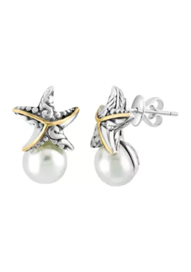 Freshwater Pearl Starfish Earrings in 18K Yellow Gold Over Sterling Silver
