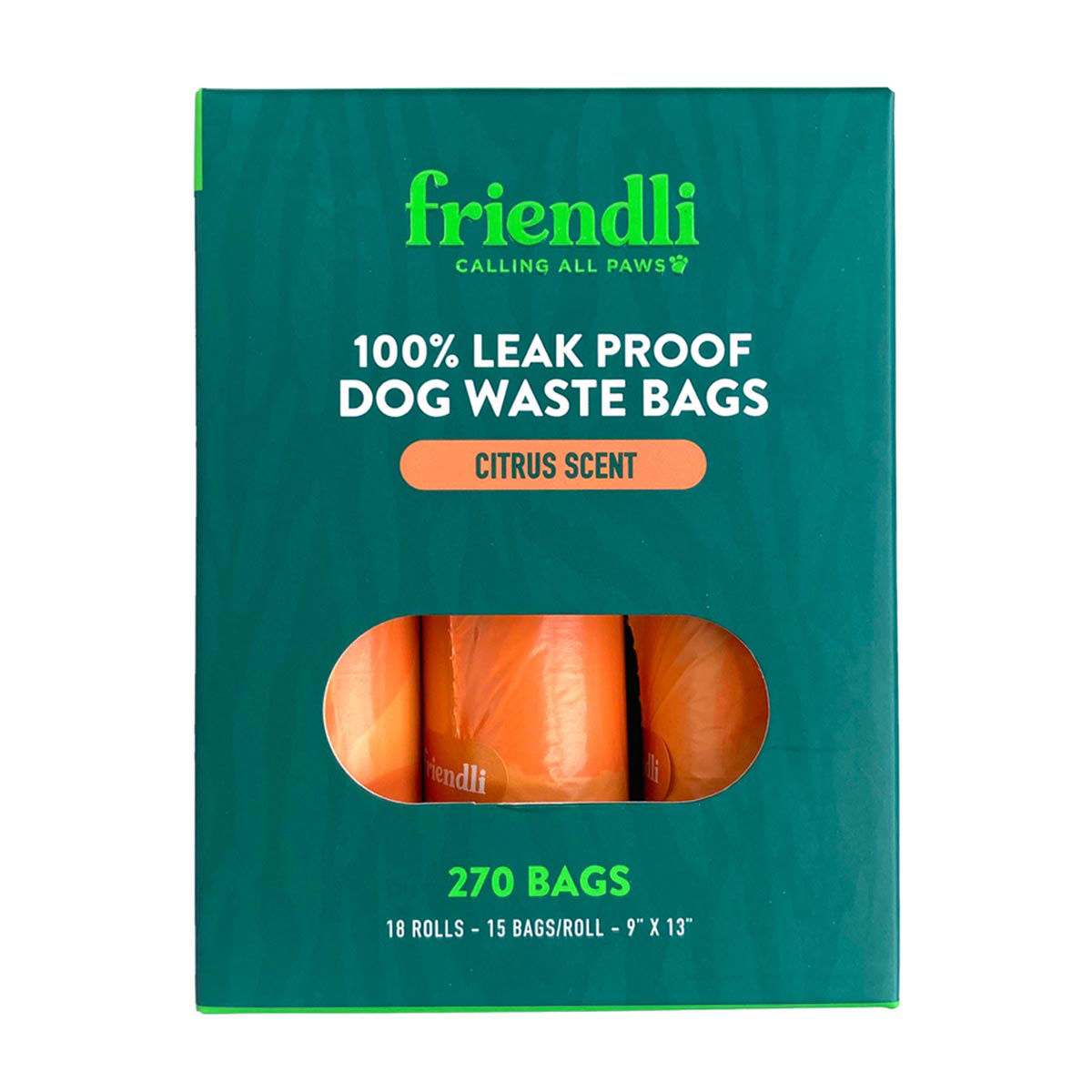Friendli Citrus Scented Dog Waste Bags, 18 Rolls